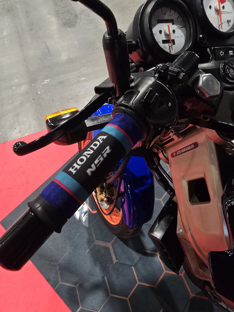 Coppia di copri manopole personalizzate in tessuto tecnico, per proteggere la moto durante il trasporto o il rimessaggio.